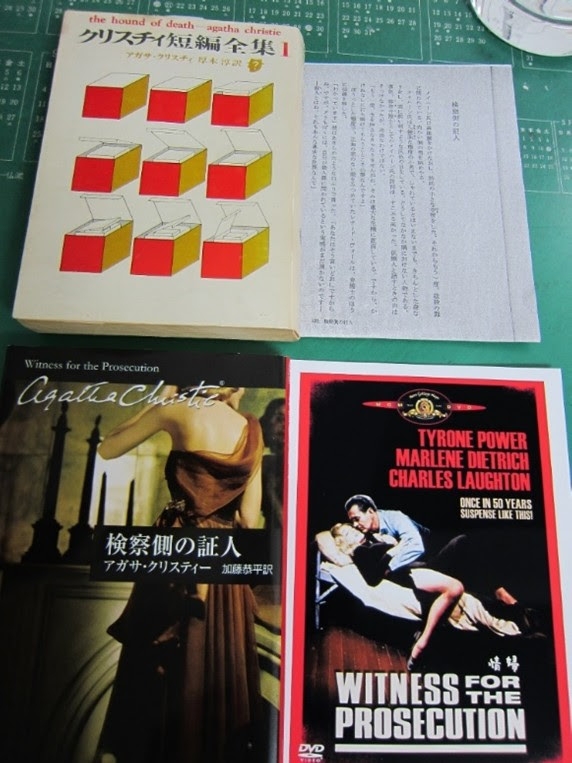 なお、クリスティの「検察側の証人」は、まず、①の短編小説が発表された後(写真は、私が学生時代に読んだ本です)、②彼女自身が新たに戯曲形式のものを執筆しており、③その映画が日本で公開される際に「情婦」というタイトルになりました。もちろん、英語のタイトルは、The Witness for the Prosecutionです。①から③では、主人公や結末が微妙に異なっていますが、どれも「ホンモノ」のクリスティの作品です。