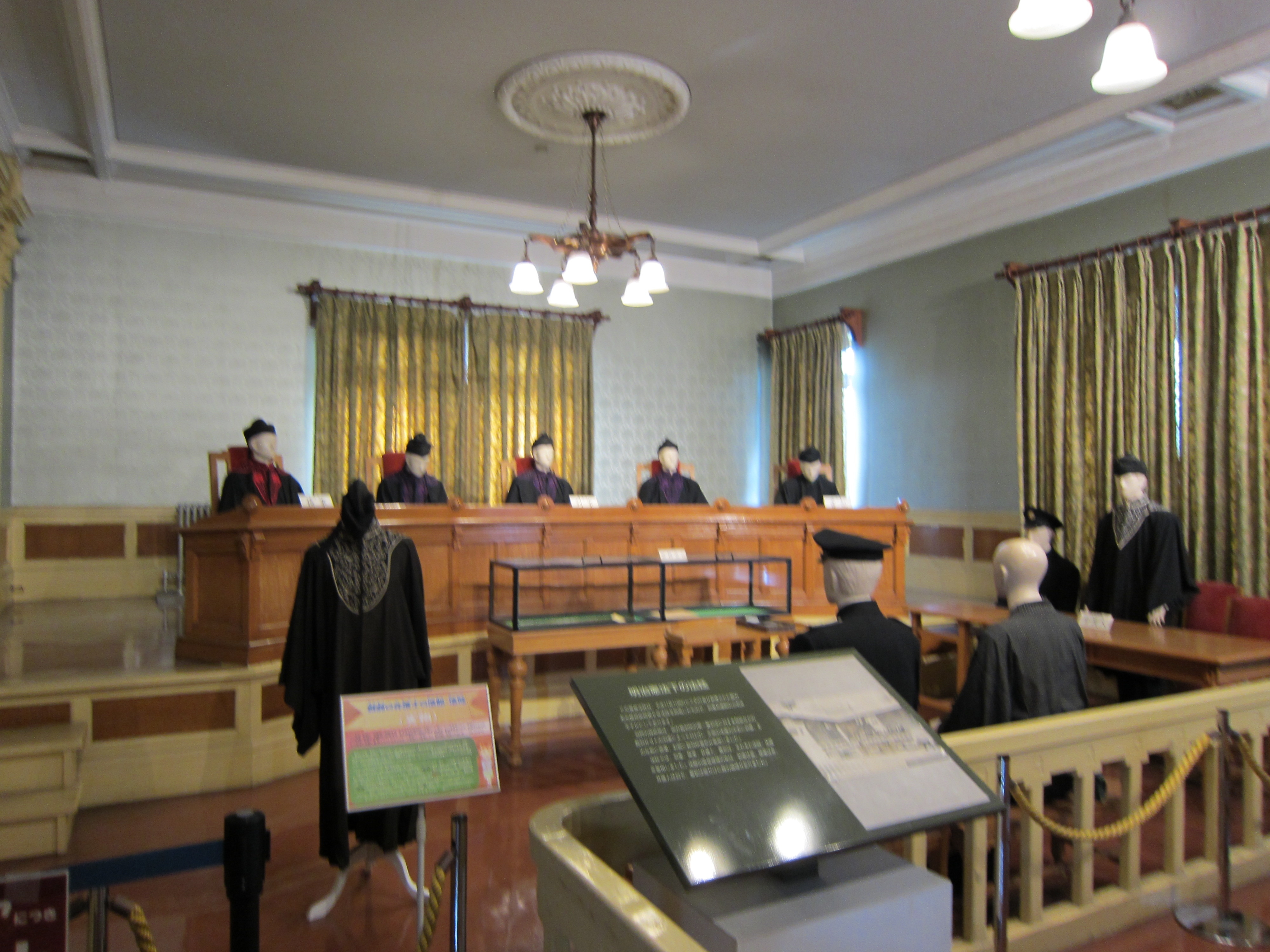 ★この写真は、明治憲法下の法廷(復元)です。名古屋市の市政資料館(重要文化財)で見ることができます。